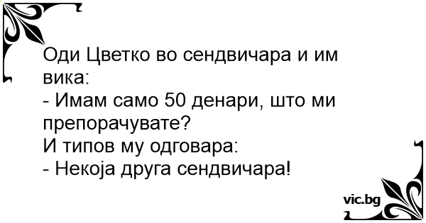 Оди Цветко во сендвичара и им вика: