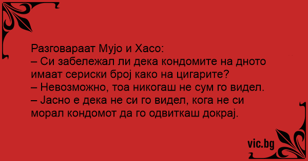 – Си забележал ли дека кондомите на дното имаат сериски број како на цигарите?