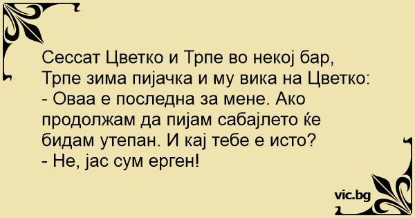 Сессат Цветко и Трпе во некој бар, Трпе зима пијачка и му вика на Цветко: