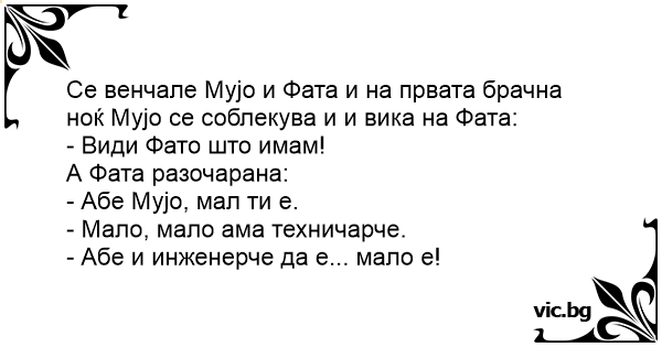 Се венчале Мујо и Фата и на првата брачна ноќ Мујо се соблекува и и вика на Фата: