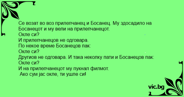 Се возат во воз прилепчанец и Босанец. Му здосадило на Босанецот и му вели на прилепчанецот.