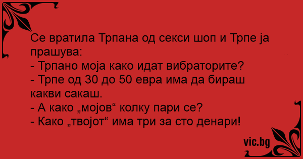 Се вратила Трпана од cekcи шоп и Трпе ја прашува: