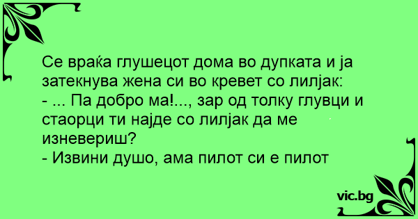 - ... Па добро ма!..., зар од толку глувци и стаорци ти најде со лилјак да ме изневериш?
