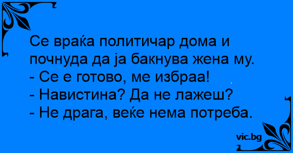 Се враќа политичар дома и...