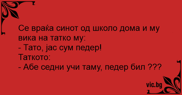 Се враќа синот од школо дома и му вика на татко му: