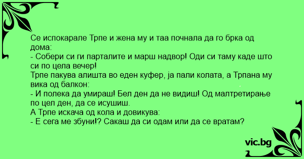 Се испокарале Трпе и жена му и таа почнала да го брка од дома: