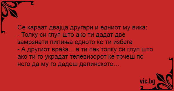 Се караат двајца другари и едниот му вика: