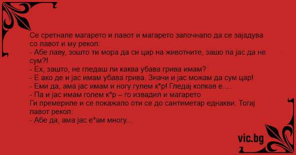поздраво му го набил. Поминале 25 минути а магарето никако да сврши. Лавот па се