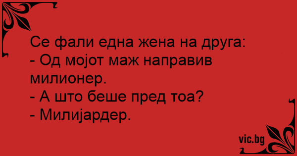 - Имам огън жена, направи ме Милионер. - Е, добре де, ти оплакваш ли се? - Ами да, бях Милиардер!