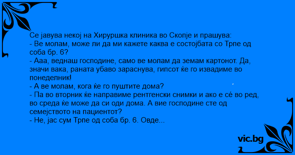 Се јавува некој на Хируршка клиника во Скопје и прашува: