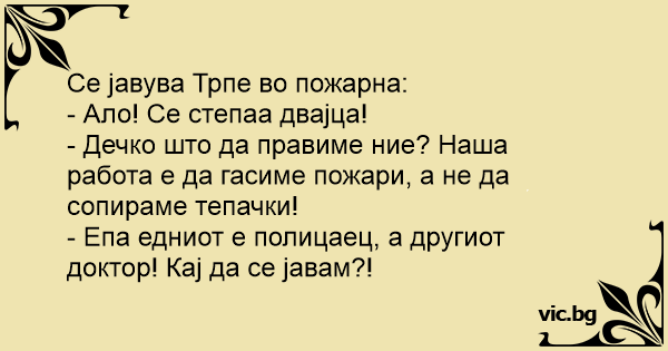 Се јавува Трпе во пожарна:
