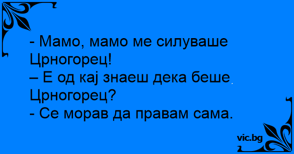 - Мамо, мамо ме силуваше Црногорец!