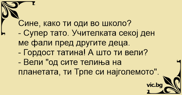 - Супер тато. Учителката секој ден ме фали пред другите деца.