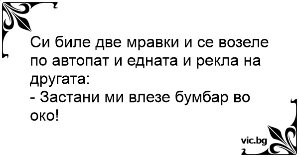 Си биле две мравки и се возеле по автопат и едната и рекла на другата: