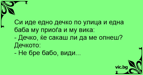 Си иде едно дечко по улица и една баба му приоѓа и му вика: