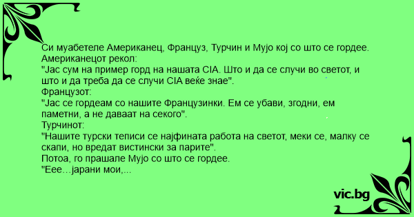 Си муабетеле Американец, Француз, Турчин и Мујо кој со што се гордее.