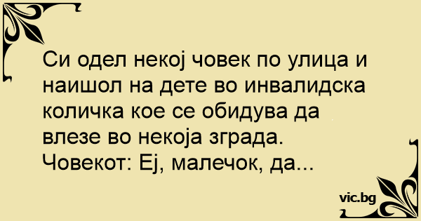 Си одел некој човек по улица и наишол на дете во инвалидска количка кое се обидува да влезе во некоја зграда.