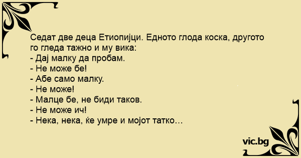 Седат две деца Етиопијци. Едното глода коска, другото го гледа тажно и му вика: