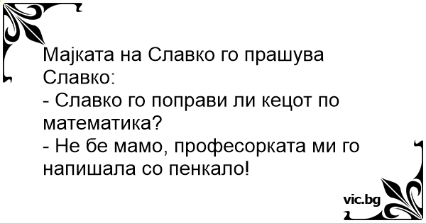 - Славко го поправи ли кецот по математика?