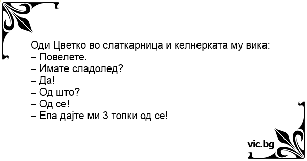 Оди Цветко во слаткарница и келнерката му вика: