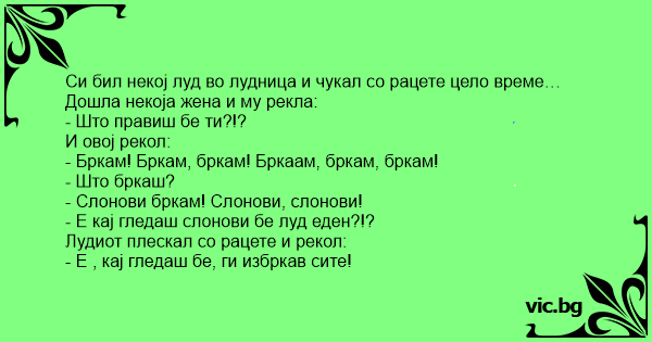 Си бил некој луд во лудница и чуkaл со рацете цело време… Дошла некоја жена и му рекла: