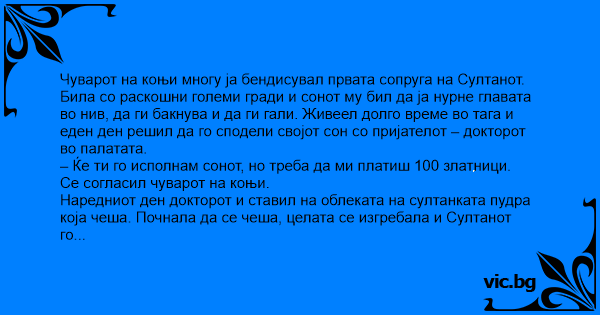 – Ќе ти го исполнам сонот, но треба да ми платиш 100 златници.