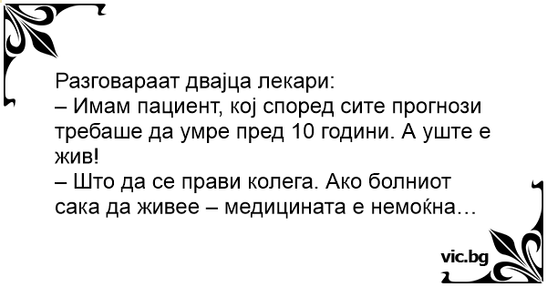 – Што да се прави колега. Ако болниот сака да живее – медицината е немоќна…