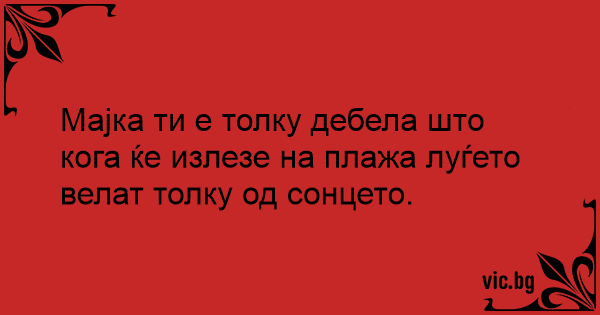 Мајка ти е толку дебела што кога ќе излезе на плажа луѓето велат толку од сонцето.