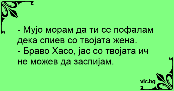 - Мујо морам да ти се пофалам дека спиев со твојата жена.