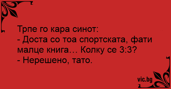 - Доста со тоа спортската, фати малце книга… Колку се 3:3?