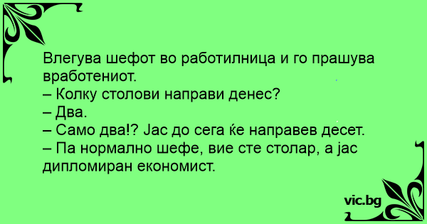 – Па нормално шефе, вие сте столар, а јас дипломиран економист.