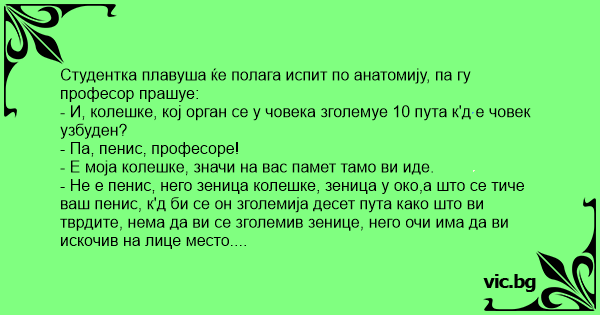 Студентка плавуша ќе полага испит по анатомију, па гу професор прашуе: