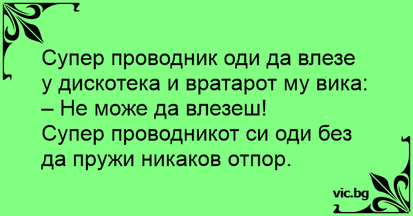 Супер проводник оди да влезе у дискотека и вратарот му вика: