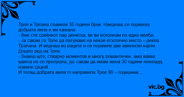 И тогаш добрата вила го направила Трпе 90 – годишник.