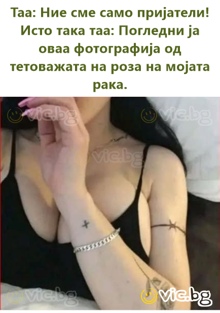 Тя: Ние сме просто приятели! Пак тя: Виж тази снимка на татуировката на роза на ръката ми. Her: We’re just friends! Also her: Look at this photo of the rose tattoo on my arm. Ella: ¡Solo somos amigos! También ella: Mira esta foto del tatuaje de una rosa en mi brazo. Она: Мы просто друзья! А ещё она: Посмотри на фото татуировки розы на моей руке. Sie: Wir sind nur Freunde! Auch sie: Schau dir dieses Foto von der Rosentätowierung auf meinem Arm an. Elle : On est juste amis ! Elle aussi : Regarde cette photo du tatouage de rose sur mon bras. Αυτή: Είμαστε απλώς φίλοι! Και πάλι αυτή: Δες αυτή τη φωτογραφία του τατουάζ με το τριαντάφυλλο στο χέρι μου. Lei: Siamo solo amici! Sempre lei: Guarda questa foto del tatuaggio di una rosa sul mio braccio. O: Biz sadece arkadaşız! Yine o: Kolumdaki gül dövmesinin bu fotoğrafına bak. Вона: Ми просто друзі! І ще вона: Подивись на це фото татуювання троянди на моїй руці. Ela: Somos só amigos! Ela também: Olha esta foto da tatuagem de rosa no meu braço. Ona: Jesteśmy tylko przyjaciółmi! Ona też: Spójrz na to zdjęcie tatuażu róży na moim ramieniu. Hon: Vi är bara vänner! Hon också: Titta på den här bilden av ros-tatueringen på min arm. Zij: We zijn gewoon vrienden! Zij ook: Kijk naar deze foto van de rozentatoeage op mijn arm. Нun: Vi er bare venner! Hun også: Se dette billede af rosentatoveringen på min arm. Нun: Vi er bare venner! Hun også: Se på dette bildet av rosetatoveringen på armen min. Hän: Olemme vain ystäviä! Hän myös: Katso tätä kuvaa ruusutatuoinnista käsivarressani. Ő: Csak barátok vagyunk! Ő is: Nézd meg ezt a képet a rózsatetoválásról a karomon. Ea: Suntem doar prieteni! Tot ea: Uită-te la această poză cu tatuajul de trandafir de pe brațul meu. Ona: Jsme jen přátelé! Ona taky: Podívej se na tuhle fotku tetování růže na mé ruce. Ji: Mes tik draugai! Ji taip pat: Pažiūrėk į šią rožės tatuiruotės nuotrauką ant mano rankos. Viņa: Mēs esam tikai draugi! Arī viņa: Paskaties uz šo rozes tetovējuma foto uz manas rokas. Ona: Mi smo samo prijatelji! I ona: Pogledaj ovu fotografiju tetovaže ruže na mojoj ruci.