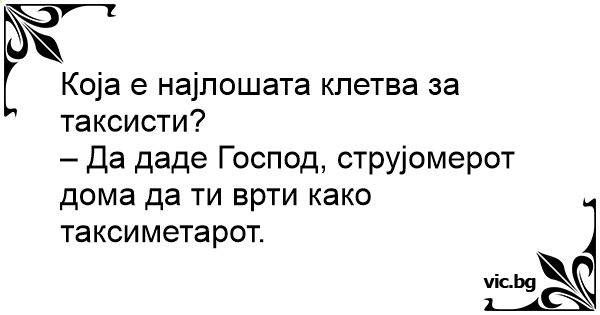 – Да даде Господ, струјомерот дома да ти врти како таксиметарот.