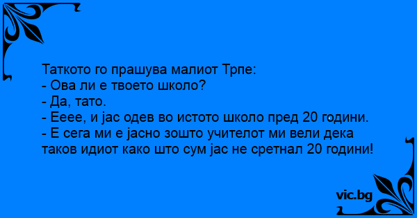 - Е сега ми е јасно зошто учителот ми вели дека таков идиot како што сум јас не сретнал 20 години!