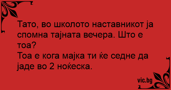 Тато, во школото наставникот ја спомна тајната вечера. Што е тоа?