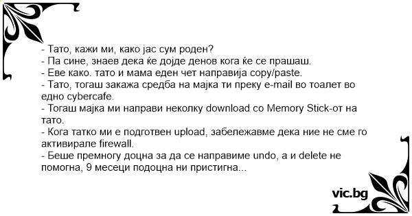 - Тато, тогаш закажа средба на мајка ти преку e-mail во тоалет во едно cybercafe.