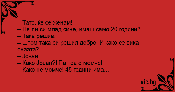 Третокласник се прибира вкъщи и казва на баща си: Поиходит парень к отцу и говорит: