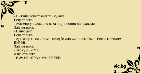 - Ај театар ќе си играме, секој ќе има уметничко име.. Еве ја ке бидам ВУРОВ.
