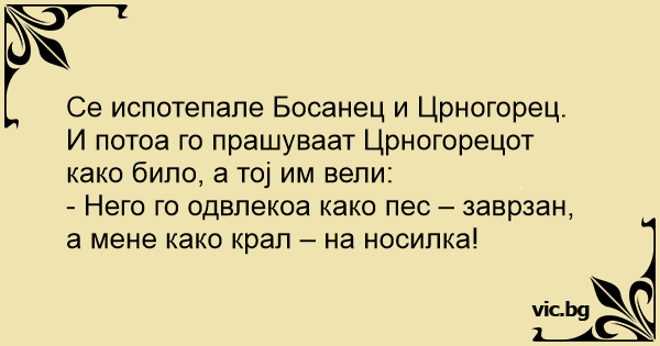 Се испотепале Босанец и Црногорец. И потоа го прашуваат Црногорецот како било, а тој им вели: