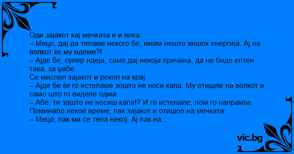 – Ајде бе ќе го истепаме зошто не носи капа. Му отишле на волкот и само што го виделе одма: