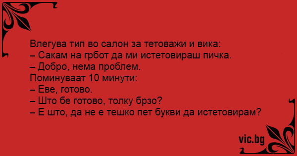 Влегува тип во салон за тетоважи и вика: