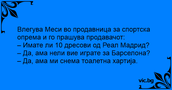 Влегува Меси во продавница за спортска опрема и го прашува продавачот: