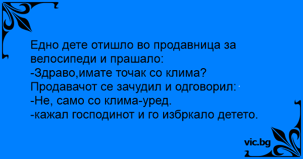 Едно дете отишло во продавница за велосипеди и прашало: