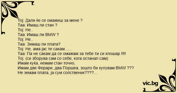 Тој: Не, ама јас те сакам......