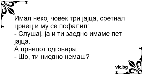 Имал некој човек три јајца, сретнал црнец и му се пофалил: