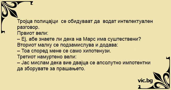 Тројца полицајци се обидуваат да водат интелектуален разговор.