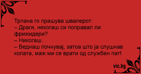 – Драги, некогаш си поправал ли фрижидери?